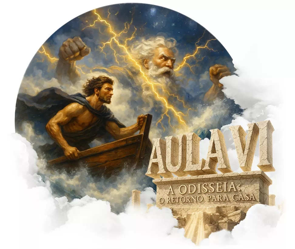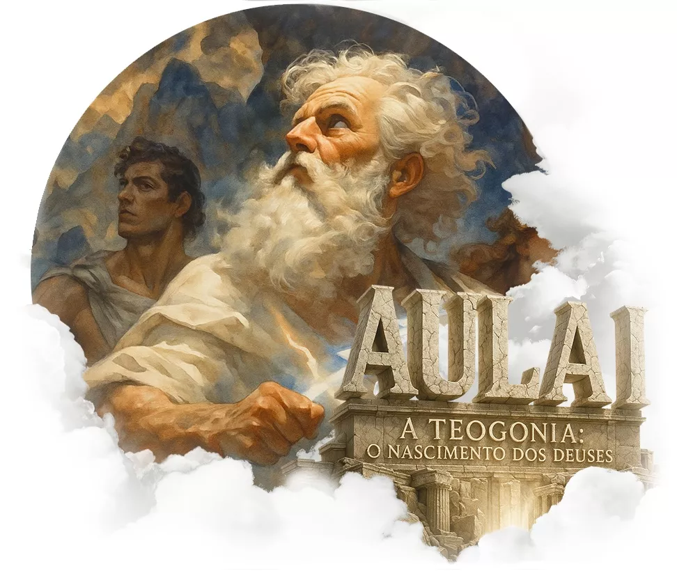 A jornada começa com a Teogonia de Hesíodo, onde exploramos como o mundo e os deuses foram criados, para compreender a lógica simbólica da mitologia grega, os arquétipos divinos que regem os destinos humanos. É a fundação da Odisseia.