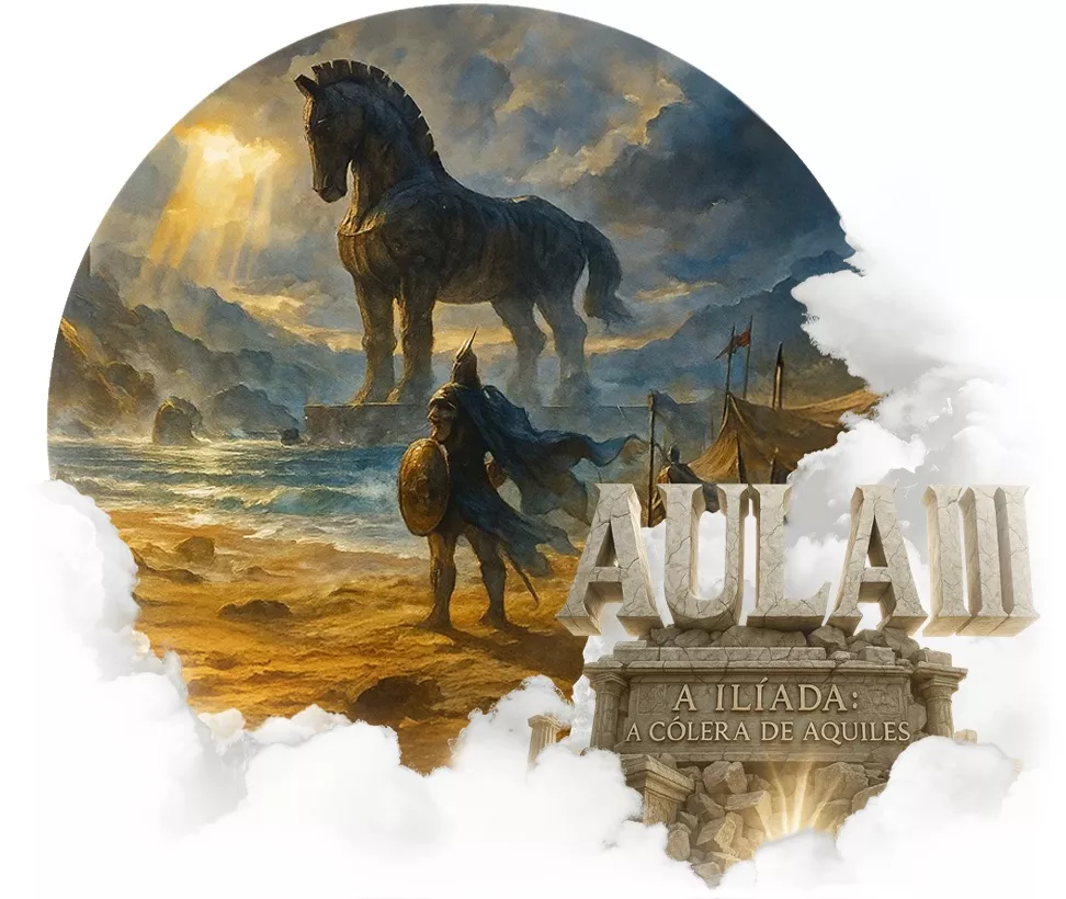 A Odisseia nasce das cinzas da Ilíada. Aqui, revemos os eventos finais da Guerra de Troia, o destino de Aquiles e o uso do Cavalo de Madeira — contexto sem o qual a jornada de Odisseu não faria sentido. É também onde os traumas e as perdas que impulsionam a Odisseia se revelam.